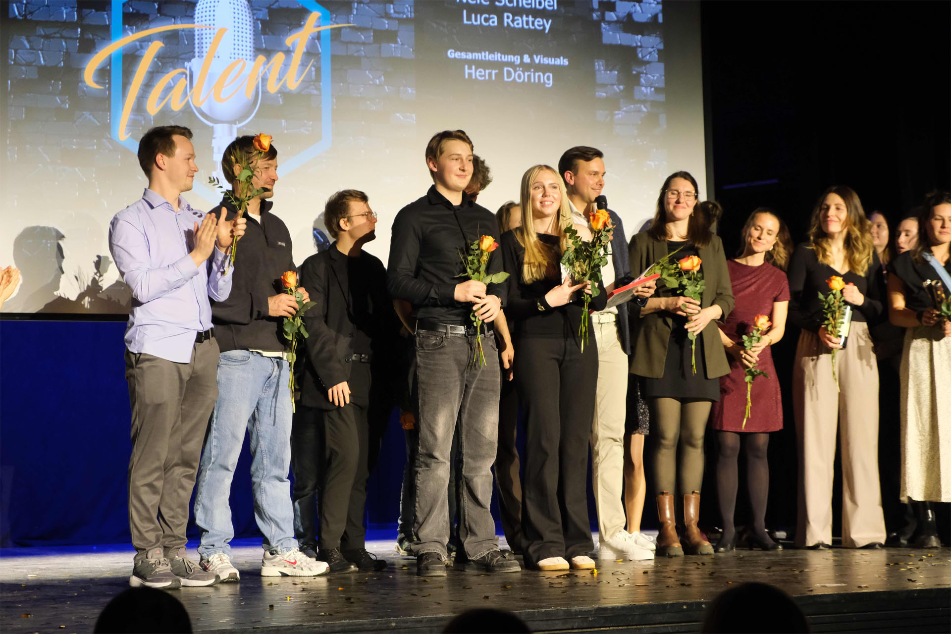 Ein solches Event entsteht jedoch nicht von allein. Organisiert wurde das Talentfest von einem engagierten Team aus Kolleginnen und Kollegen der Werner-Heisenberg-Schule: Herr Wuttig, Frau Eckardt, Frau Bader, Frau Brus, Frau Findeisen, Herr Bär, Herr Venus sowie unserem Matthias aus dem Freizi. Besonders hervorzuheben ist zudem Herr Döring, der als künstlerischer Leiter das Talentfest maßgeblich begleitet und gestaltet hat. Mit viel Einsatz und Engagement sorgten sie dafür, dass dieser besondere Abend zu einem unvergesslichen Erlebnis für alle Beteiligten wurde.