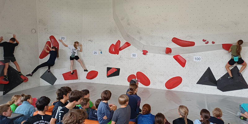 Mit einer starken Leistung im Finale sicherte sich das Team um Amelie Herold, Henriette Gentner, Olivia Sommer und Ben Kant (alle 8. und 9. Klasse) den ersten Preis im diesjährigen Bouldercup am 26. September 2025 unter den Leipziger Schulen.